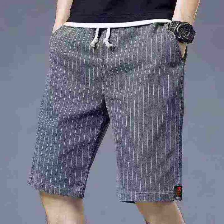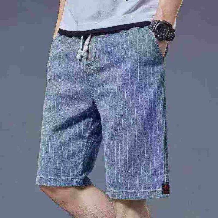 松紧腰牛仔短裤休闲男夏季男装条纹水洗夏天五分中裤 ...