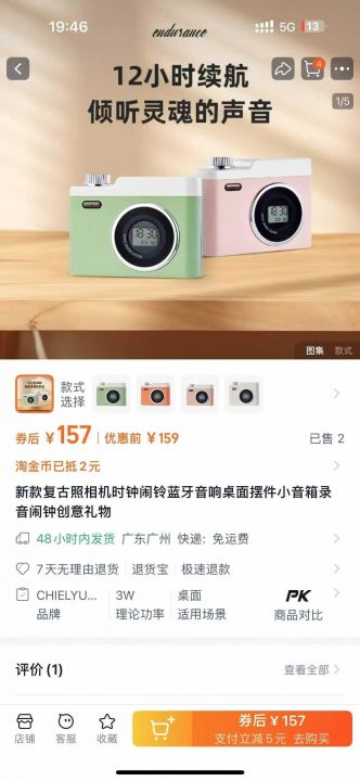 新款复古照相机时钟闹铃蓝牙音响,桌面摆件小音箱,400 个左右