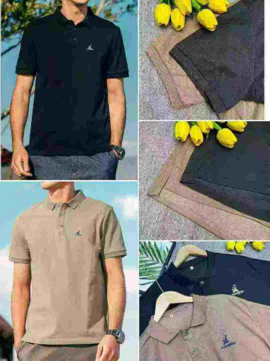 全清价6.9元夏季男商务休闲翻领短袖纯色简约透气T恤Po...
