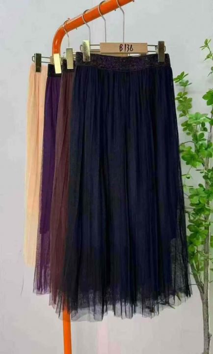 高腰双层网纱松紧腰半身裙小个子梨形身材a字设计感减龄飘仙长裙,独立包装,码数S-L,咖啡色和紫色占比多,S码裙长78厘米,双层网纱,分货+1 (货号0907#19)