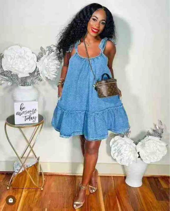 欧美时尚女装吊带绑带洗水牛仔连衣裙,数量:117件,码数:S-2XL,整款三色,品质好,有独立包装。