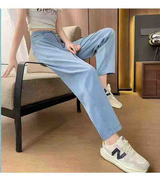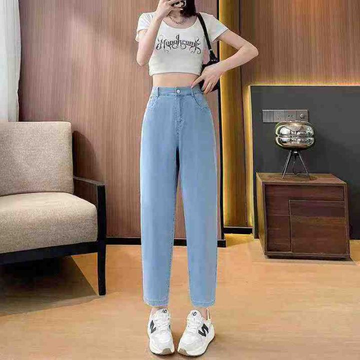 早秋新款大码女装宽松洗水棉哈伦牛仔老爹裤,独立包装...