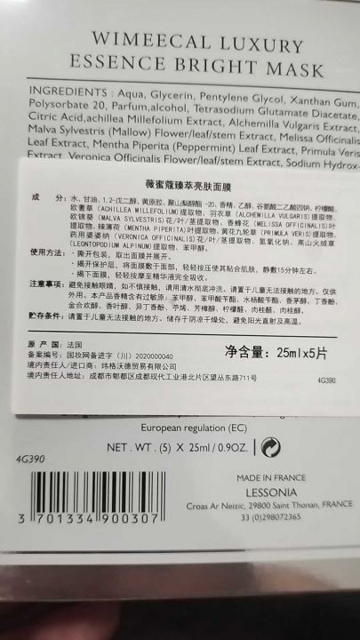 法国进口−薇蜜蔻臻亮白面膜箱规:88日期:2027年10月...