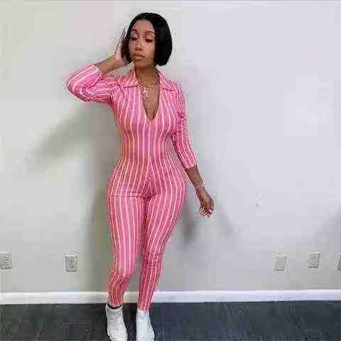 欧美性感时尚简约条纹PoLo翻领连体裤 ,数量:600件左右,码数:S-2XL,图片款2个整款,高弹力品质好,有独立包装。