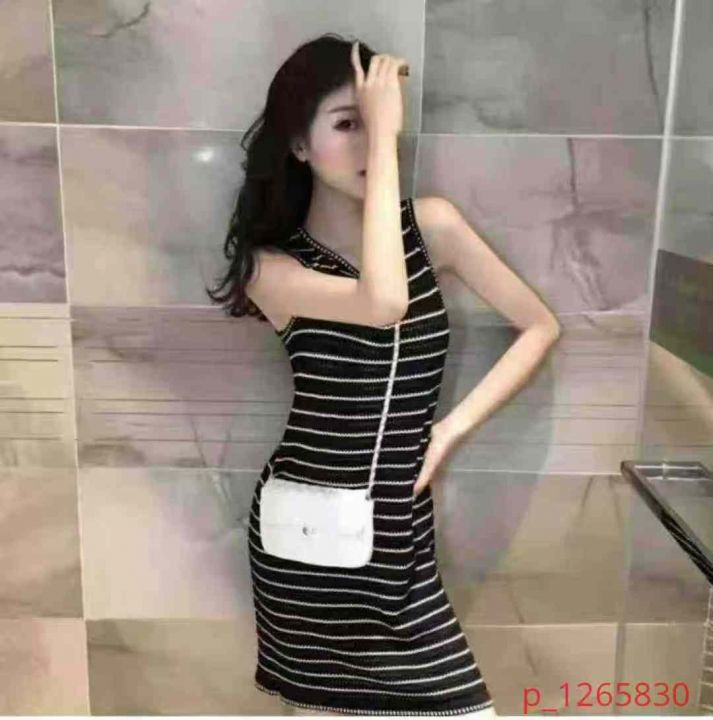 夏季新款撞色条纹针织背心连衣裙,独立包装,均码面料柔软舒适弹力大,109件,全清6.9元超低价秒杀! _@_@
