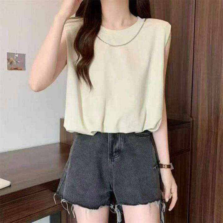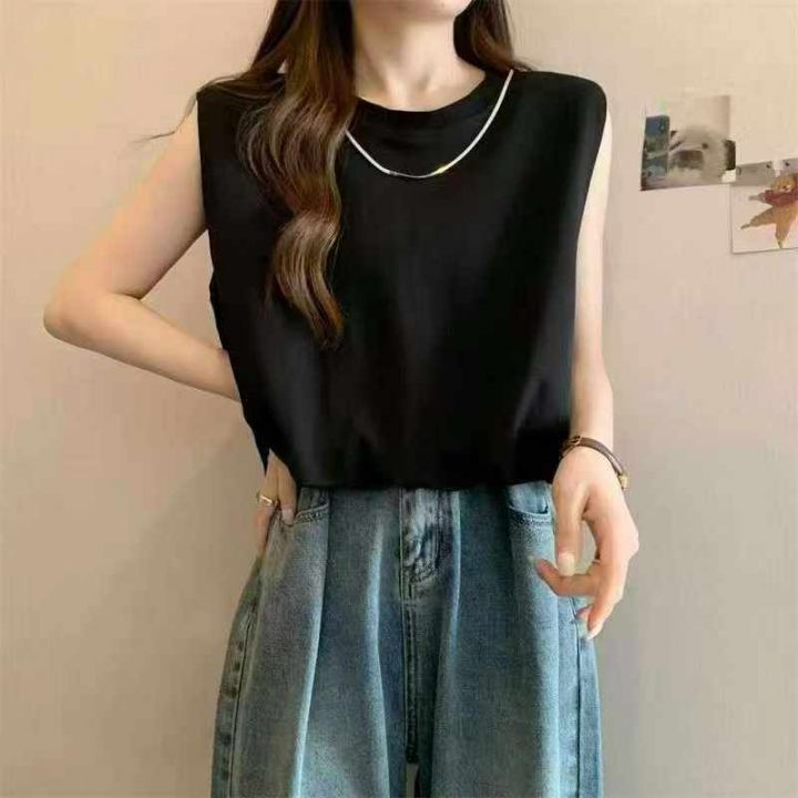 夏季圆领背心无袖t恤女时尚洋气减龄修身短款坎肩百搭...