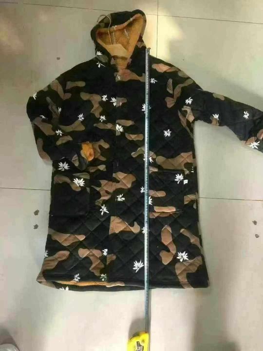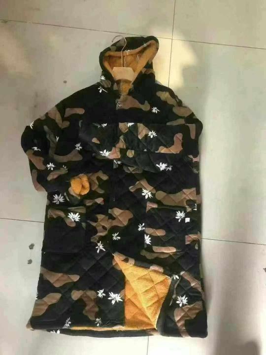 详情:卖不完按原价退款,内胆加厚北极绒,连帽款,大板均码,长度95公分,可从100斤穿到180斤。 货号:8991