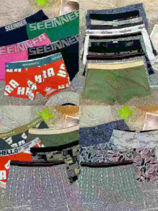 17200条男士平角内裤,尺码m-4xl码,面料有纯棉 冰丝 网眼少量 拉架棉,高弹力,做工精细,软面料,几乎是视频花色款式,防水袋装,200起分货2.5