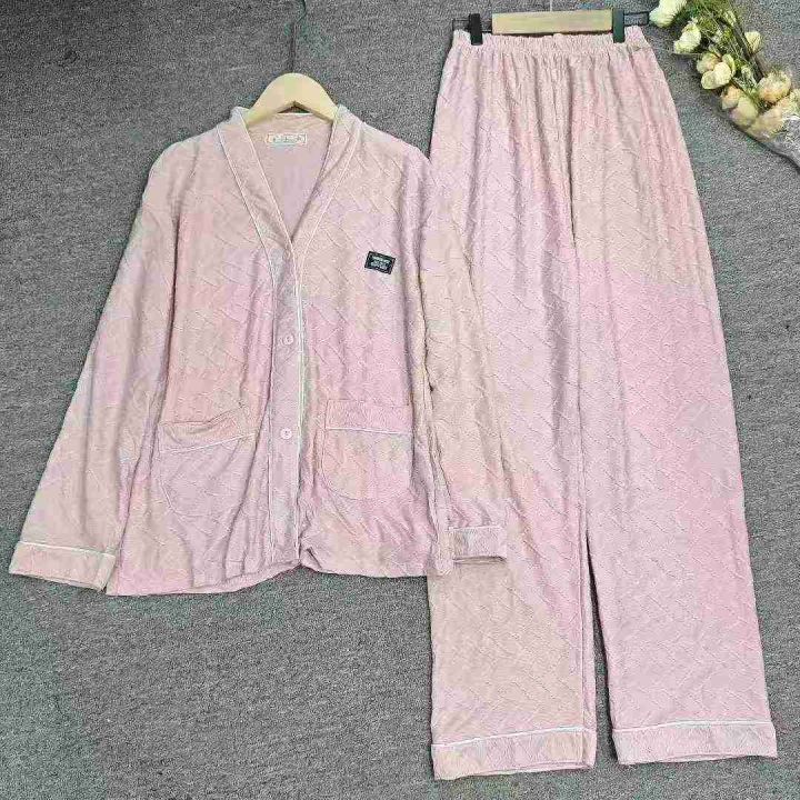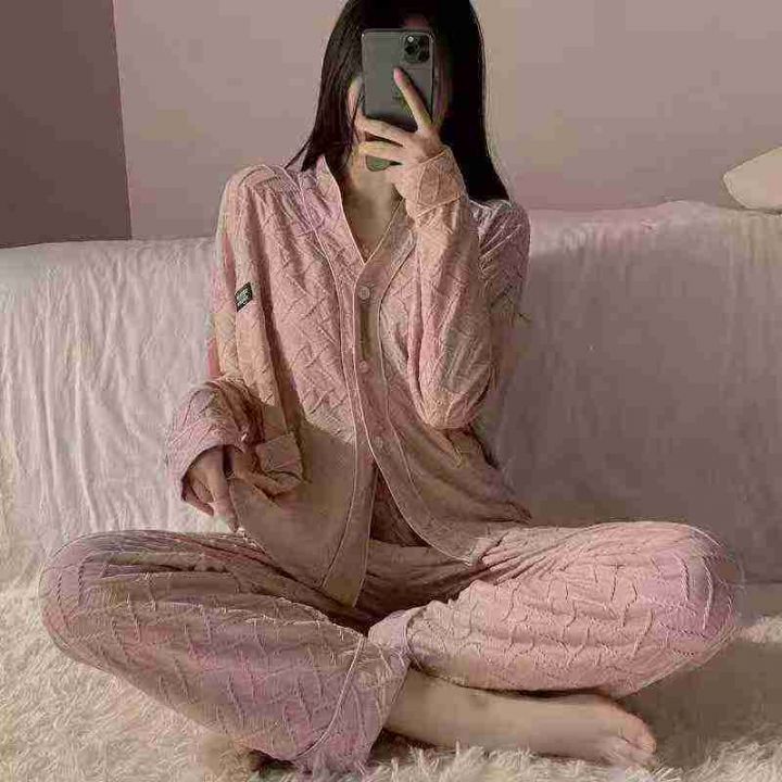 爆款睡衣女款2025新款长袖开衫提花家居服,独立包装,整款三色,90套左右,M-XL码,11.8元秒杀!!