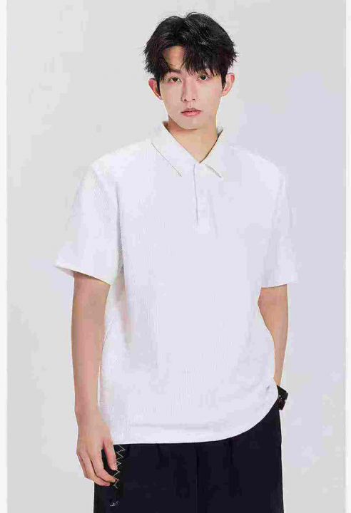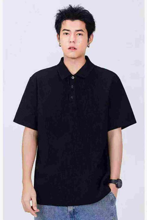☕️纯色光版黑白色男装polo衫新款夏季翻领短袖t恤潮...