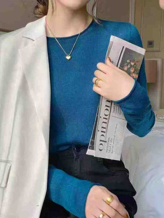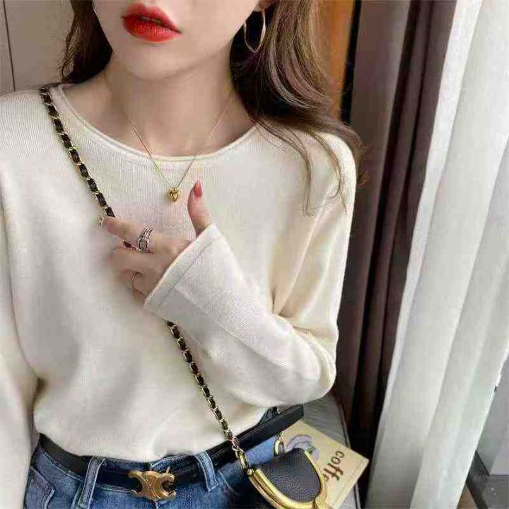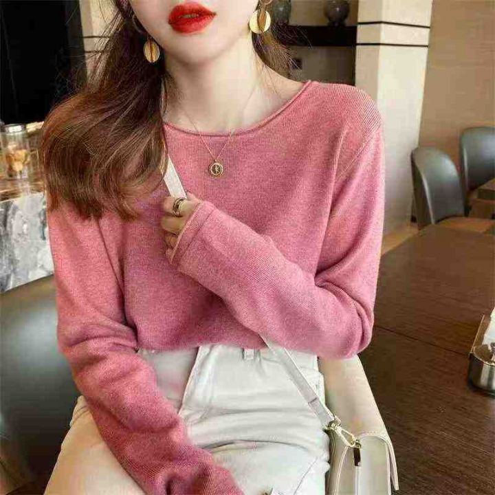 秋冬新款韩系休闲百搭气质纯色简约圆领包芯纱套头毛衣...