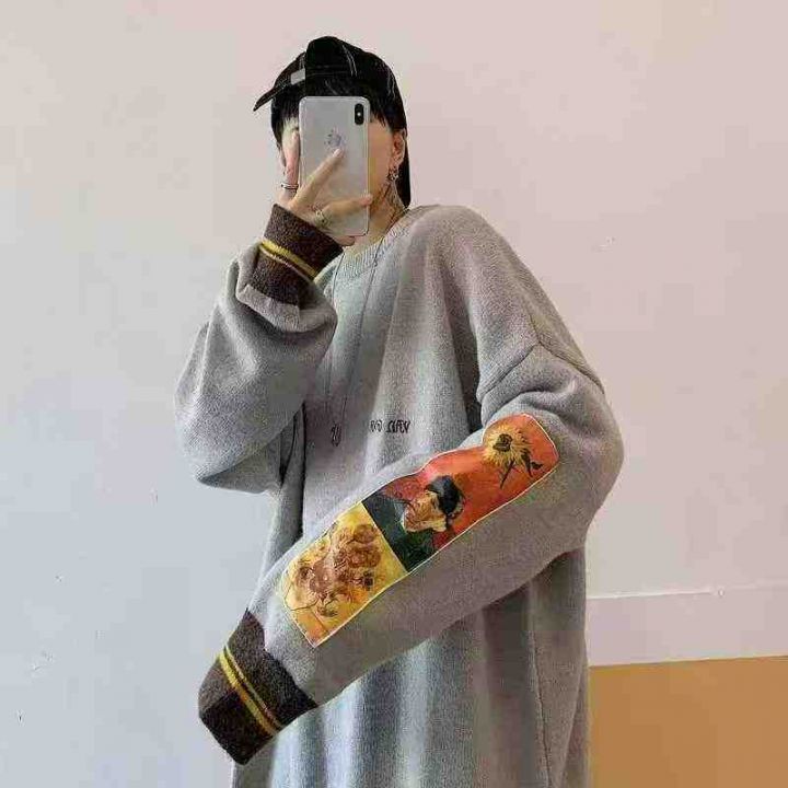 秋冬季新款宽松慵懒风港风字母提花圆领加厚北极绒套头...