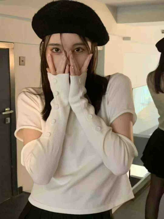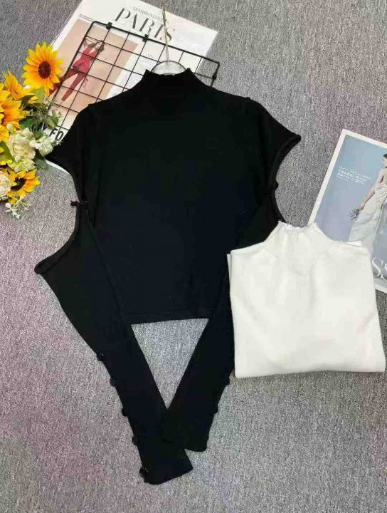 秋季新款辣妹纯色内搭设计感可拆卸半高领针织套头毛衣...