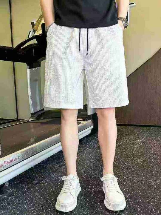 男装潮牌款运动休闲短裤,数量130条左右,码数L-XL-XXL,单款白色,有抽绳有口袋,独立包装