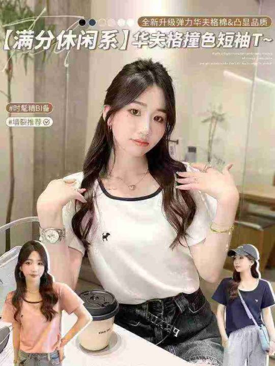 腾仓库捡漏:5.8一件品牌纯棉撞色刺绣圆领修身显瘦短...