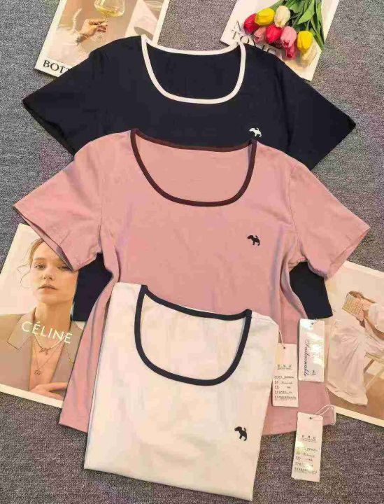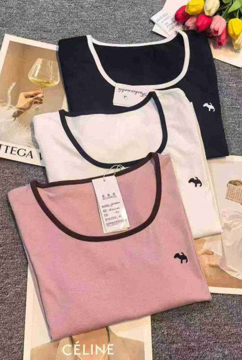 品牌纯棉撞色刺绣圆领修身显瘦短袖,[爱心]300件左右,粉色为主其它颜色几件,尺码S-XL,穿80-120斤,原包装瑕疵,分货加一