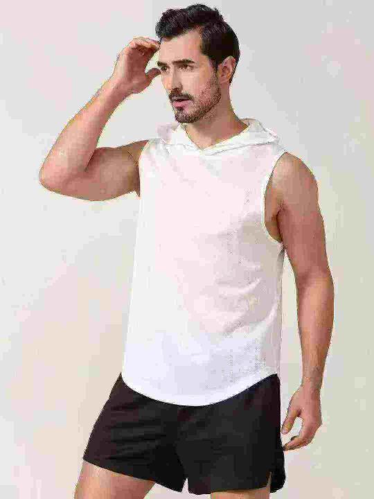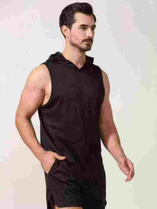 纯色运动健身无袖连帽透气速干T恤,690套左右,黑色连帽为主,码数S-2XL,可穿90斤-150斤,独立包装,货品干干净净,分货+1