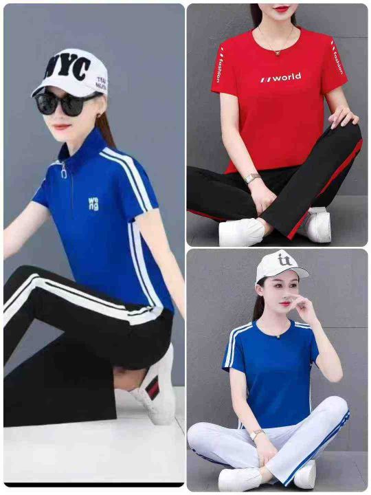 8.8清天猫仓回收390套品质款运动风短袖长裤两件套运动...