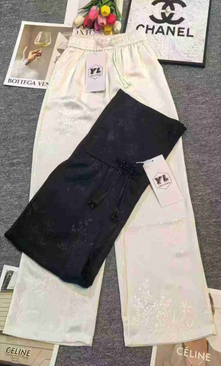 品牌高端国风缎面提花阔腿裤,50件左右,黑色为主,[爱心]XS-2XL,穿80-140斤,[666]原包装无瑕疵