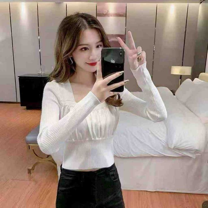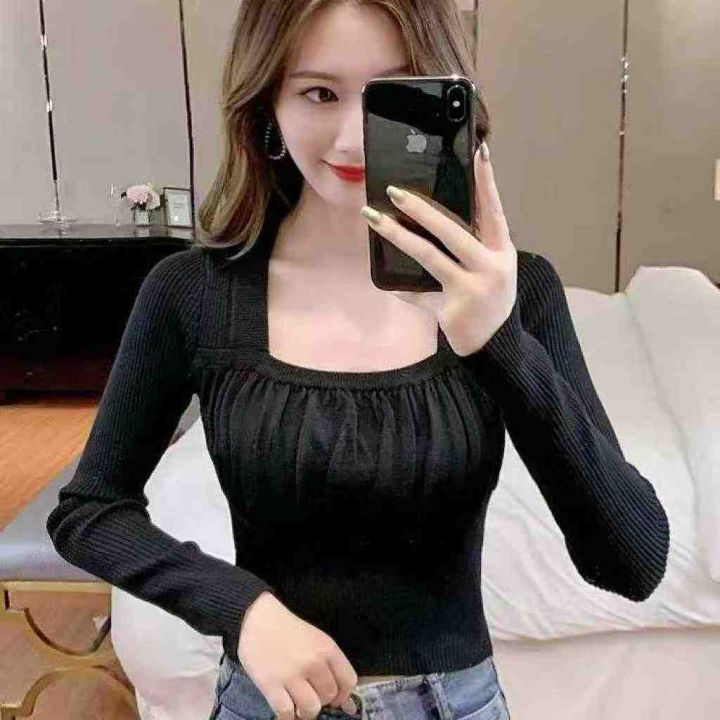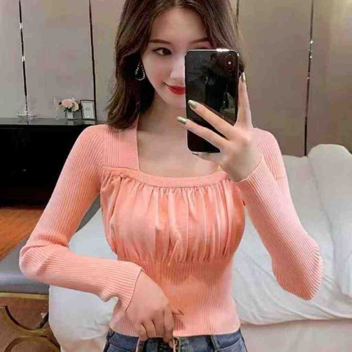 秋季新款韩系时尚纯欲辣妹弹力修身长袖针织毛衣,独立...