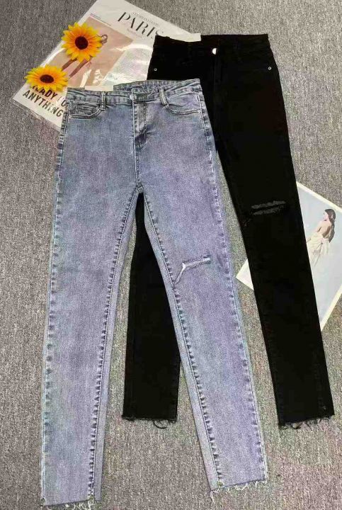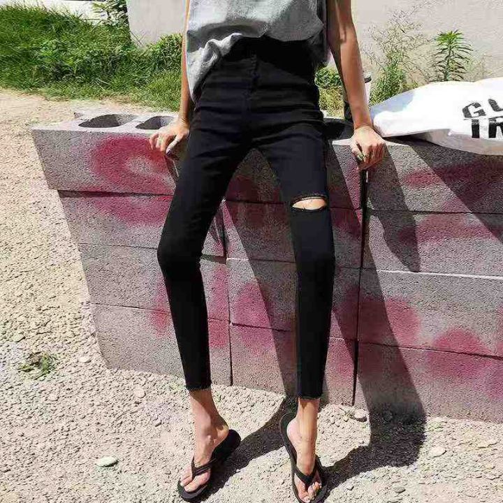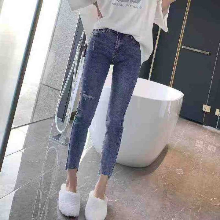 秋季新款高弹力洗水棉破洞牛仔小脚裤,2个款图片款,码数S-XL码, 200件,全清8.8元超低价秒杀!