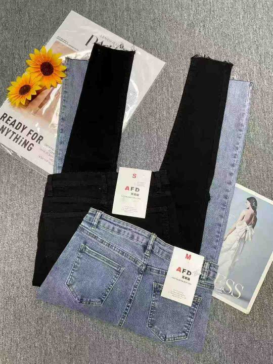 秋季新款高弹力洗水棉破洞牛仔小脚裤,2个款图片款,...