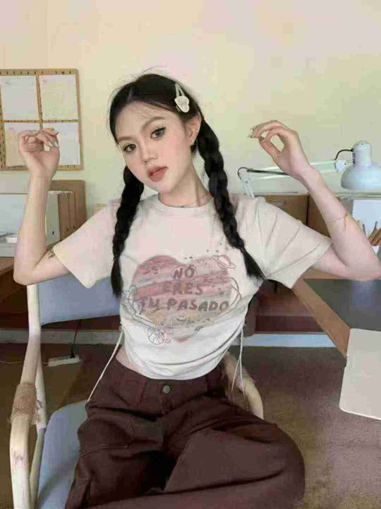 广州十三行档口货3000件夏季网红爆款纯棉辣妹抽绳短t,可穿90-130斤,面料柔软舒适有弹力,质量质感款式都超级好,独立包装带吊牌。分货加一