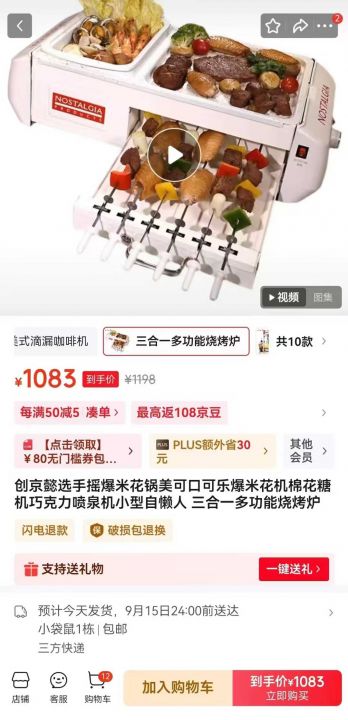 三合一多功能3升锅+烤盘25×25CM+旋转烤叉6个三个...