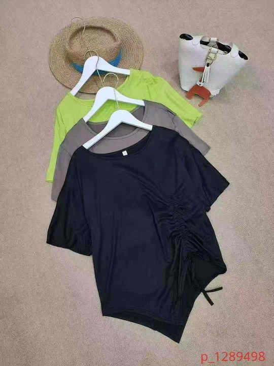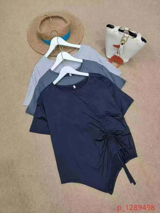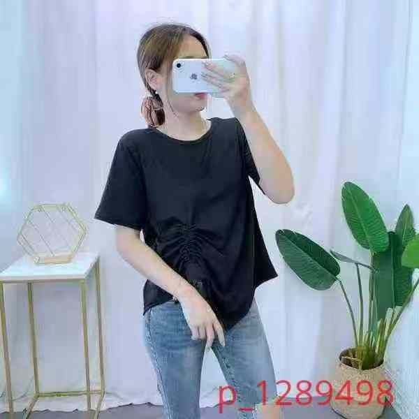 [月亮]:不规则抽绳收腰设计休闲宽松T恤