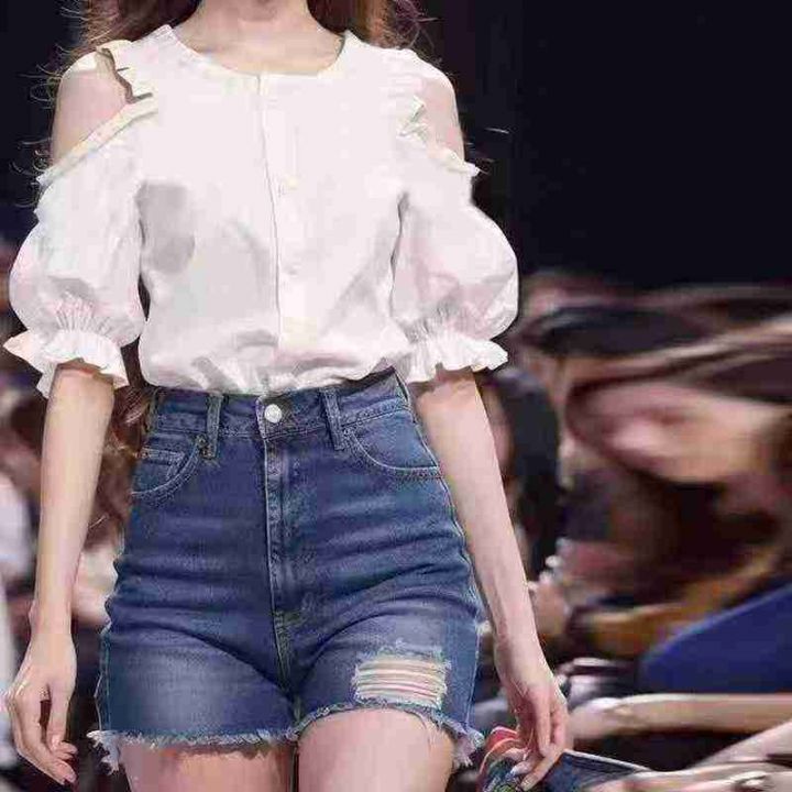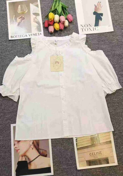 法式高级感气质露肩轻熟上衣女,[爱心]100件左右,码数S-XL,M码为主,穿80斤-130斤,万佳档口货,原包装️无瑕疵,实体店品质