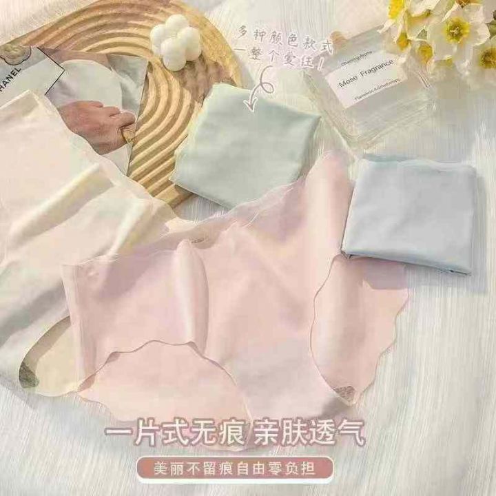 日系新款冰丝无痕无缝透气中腰女士内裤,出口原单纸箱...