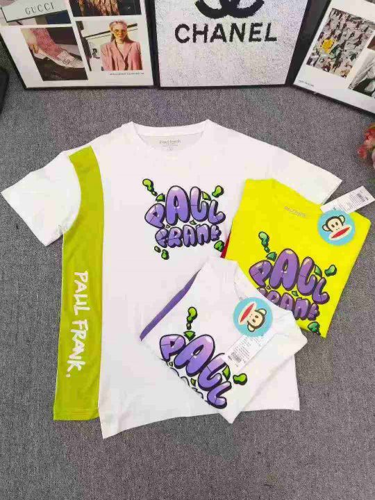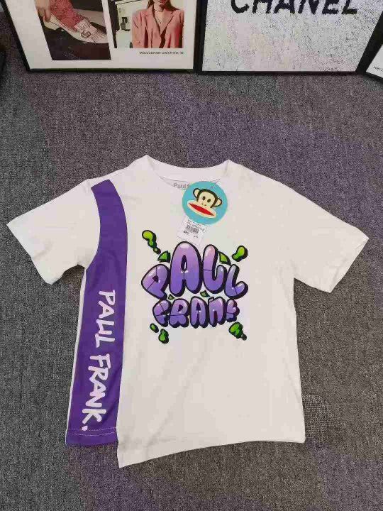 品牌童装新款潮牌百搭痞帅字母圆领T恤 数量1800件左右 尺码110--160 整款三个色 后领包边 独立包装带吊牌(大嘴猴) 货品整洁质佳 100件起