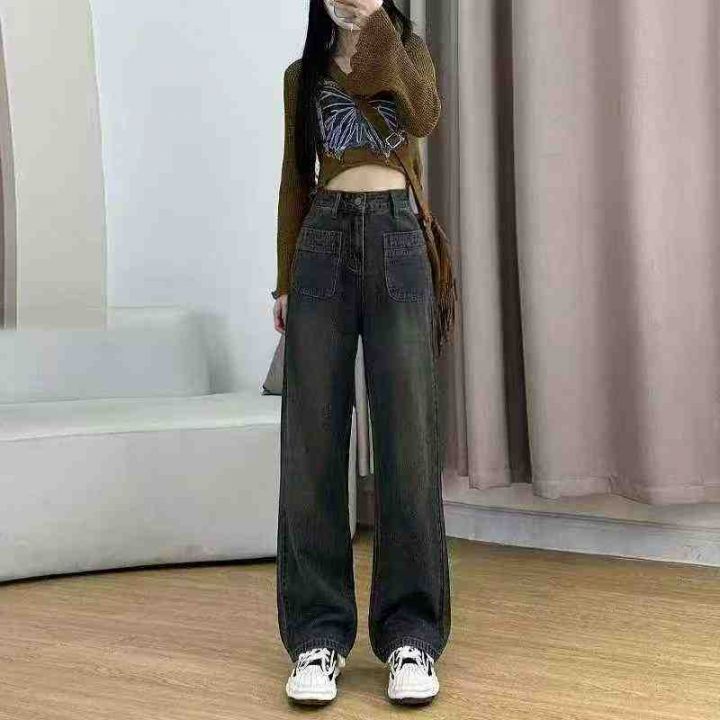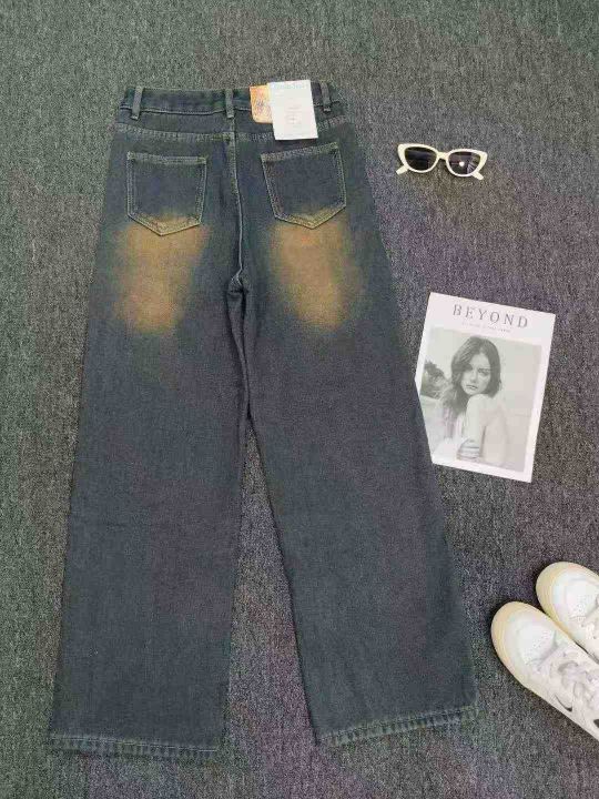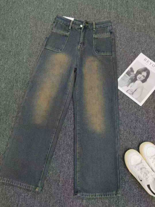 款号8828秋冬款加绒加厚女装牛仔裤韩版复古水洗做旧直筒阔腿牛仔裤休闲高腰显瘦拖地长裤子 独立包装 有吊牌 码数S-XL 数量190件,全清14.8