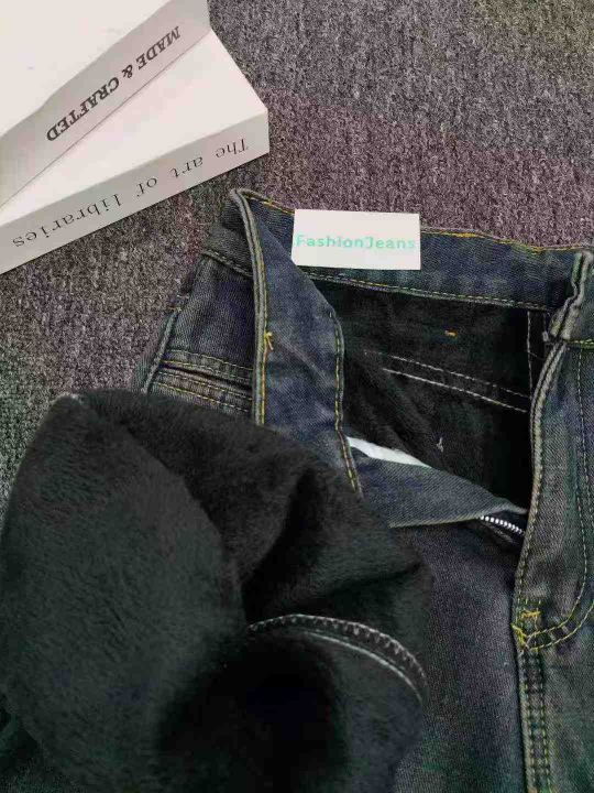 款号8828秋冬款加绒加厚女装牛仔裤韩版复古水洗做旧直...