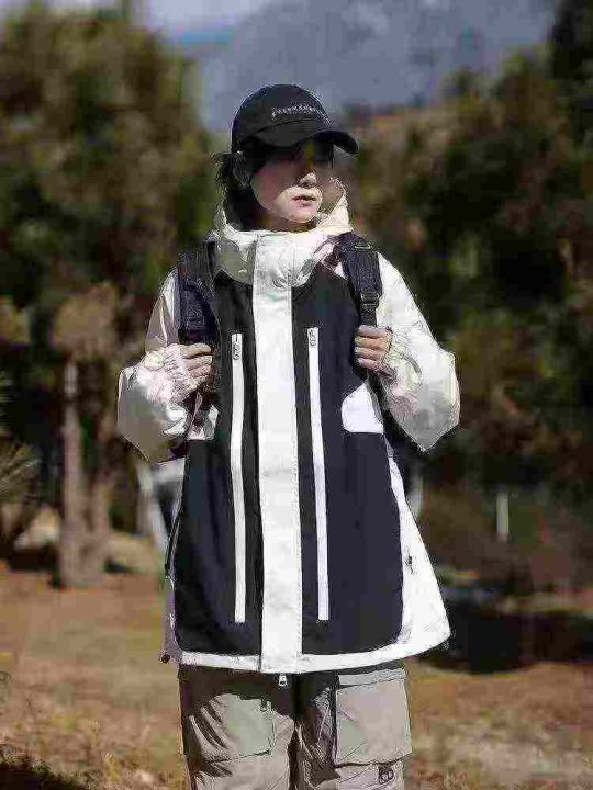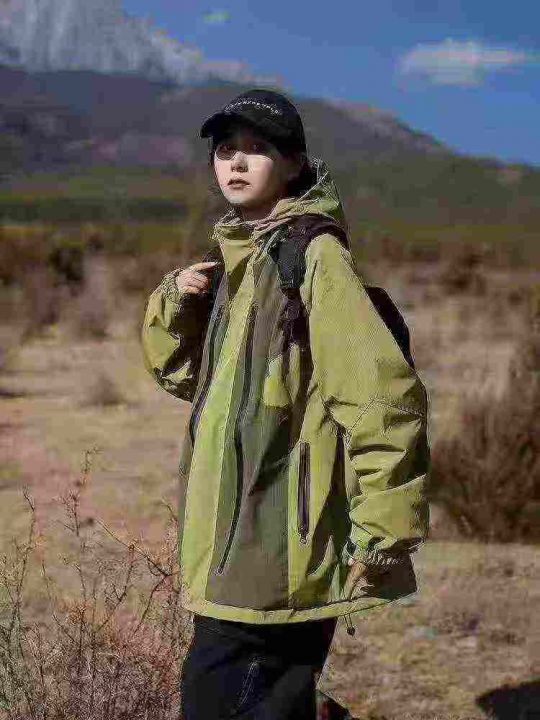 山系机能男女同款拼接撞色户外双层连帽·带里衬防风冲...