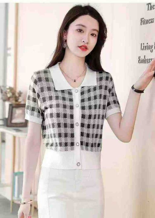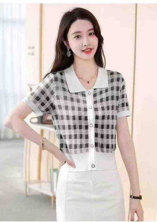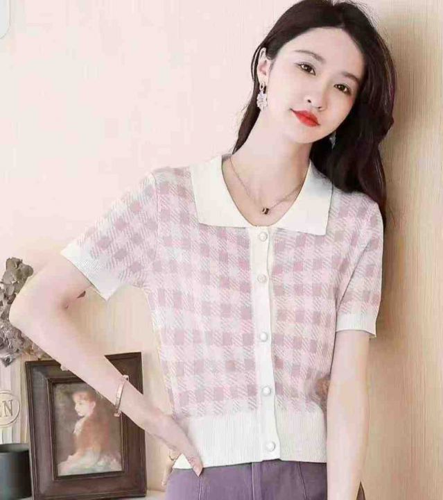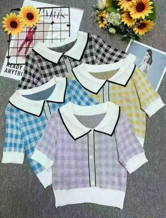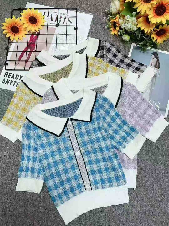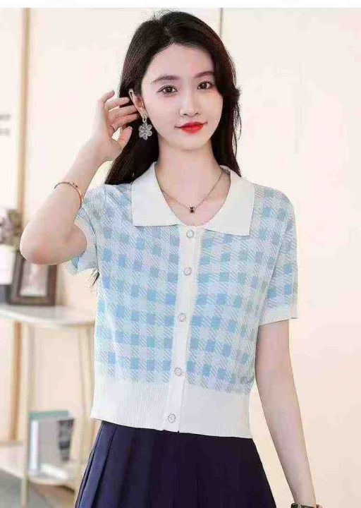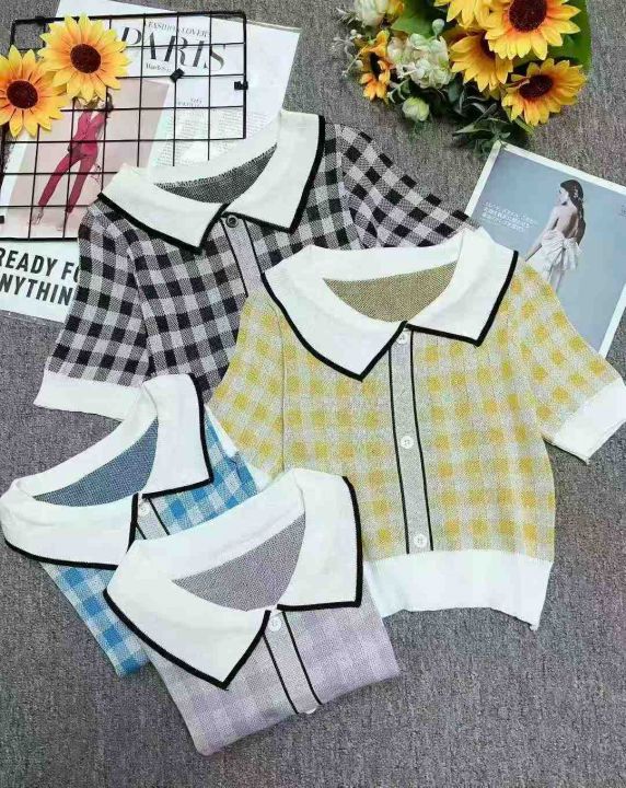 夏季新款甜美辣妹复古格纹Polo领弹力修身短款针织小衫,独立包装的,均码面料柔软舒适,1130件,全清6.9元超低价秒杀!分货加一!