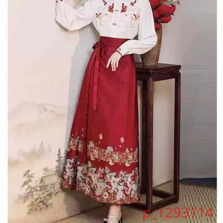 原创复古国风高端气质优雅一片式马面裙,里衬有印红,120件左右,均码穿90-120斤,不介意的来,分货➕1️⃣ _@_@