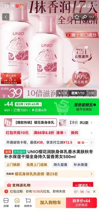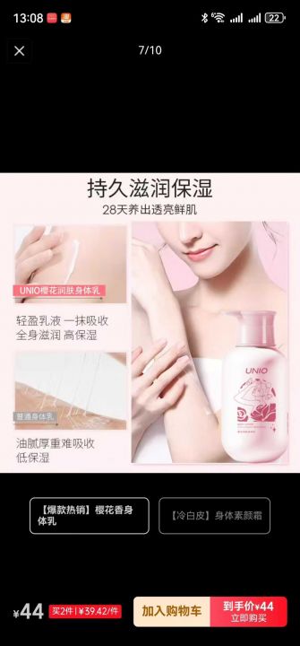 UNIO樱花润肤身体乳香水美肤秋冬补水保湿干燥全身持久留香男女500ml(京东专卖)控价高。