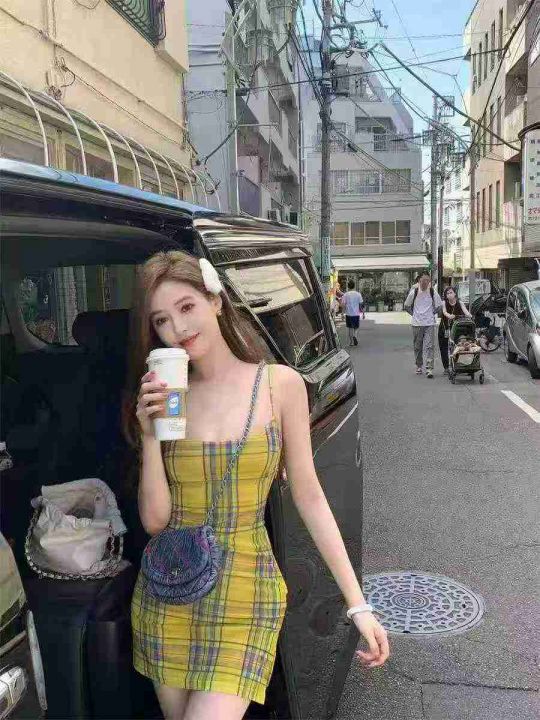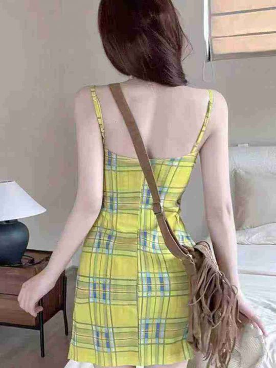 捡漏清:3.99一件辣妹纯欲多巴胺黄色格子吊带裙,150...