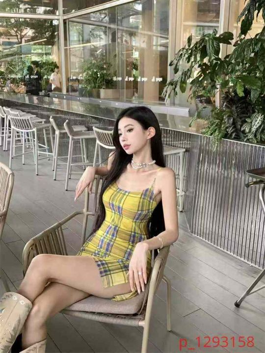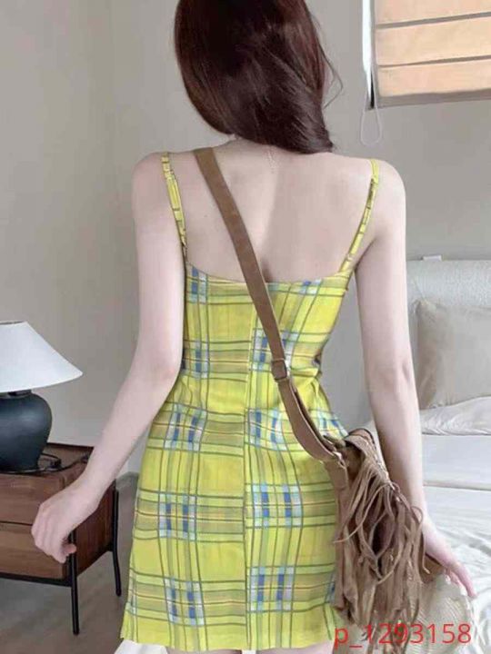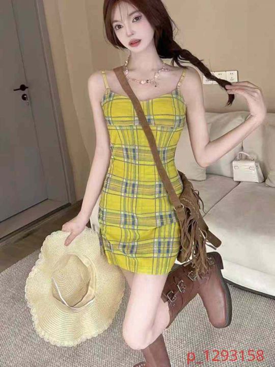 辣妹纯欲多巴胺黄色格子吊带裙,150件左右,[爱心]均码有弹力,穿70斤-110斤,[庆祝]原包装️瑕疵 _@_@