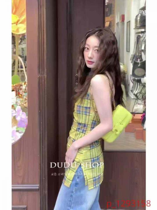 捡漏清:3.99一件辣妹纯欲多巴胺黄色格子吊带裙,150...