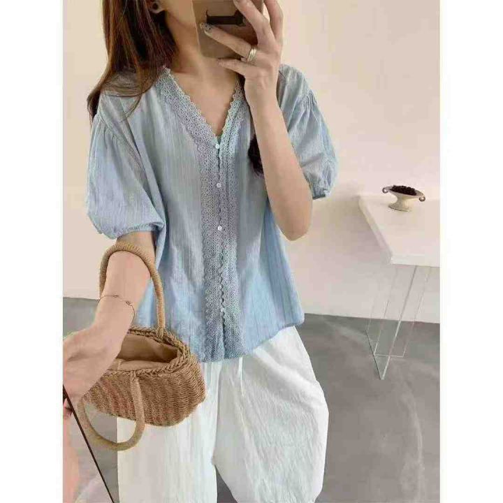 85 件[红包]女装蕾丝边V领雪纺衫上衣, 新款通勤百搭...