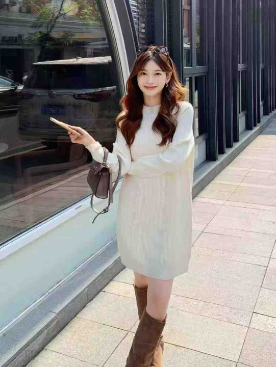 秋冬新款大版宽松净版简约圆领套头毛衣裙,独立包装,...
