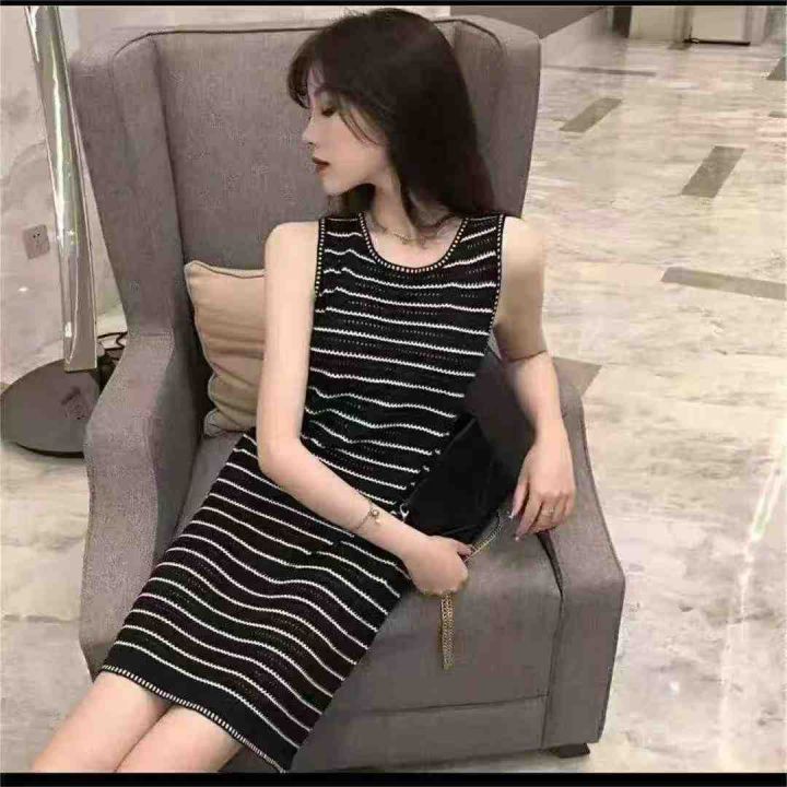 夏季新款撞色条纹针织背心连衣裙,独立包装,均码面料柔软舒适弹力大,109件,全清6.9元超低价秒杀!