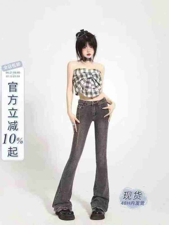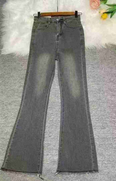 灰色辣妹微喇牛仔裤春秋2025新款高腰显瘦直筒大码马蹄毛边喇叭裤子851件,尺码S~2XL独立包装,货品干净整洁,全清福利价13.8元,分货➕1