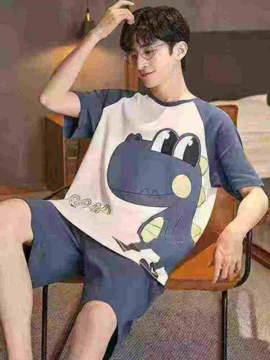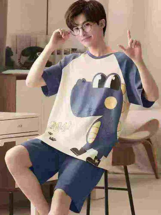 男士睡衣夏季纯棉短袖短裤薄款卡通男款夏天家居服套装...