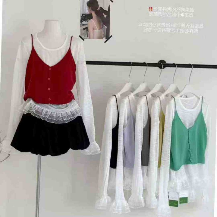 早季新款韩系宽松叠穿小清新针织开衫吊带背心,独立包...