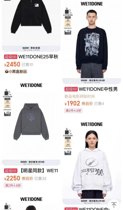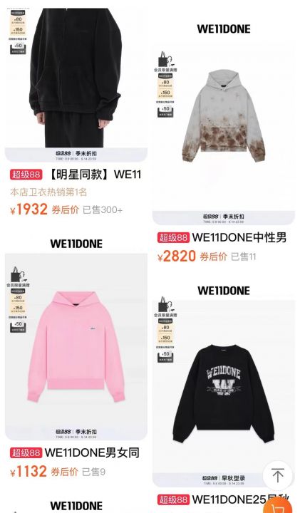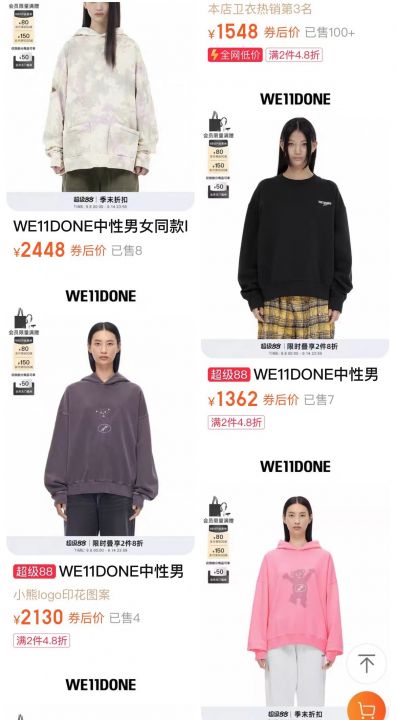 WE11系列卫衣有几千件,可以分