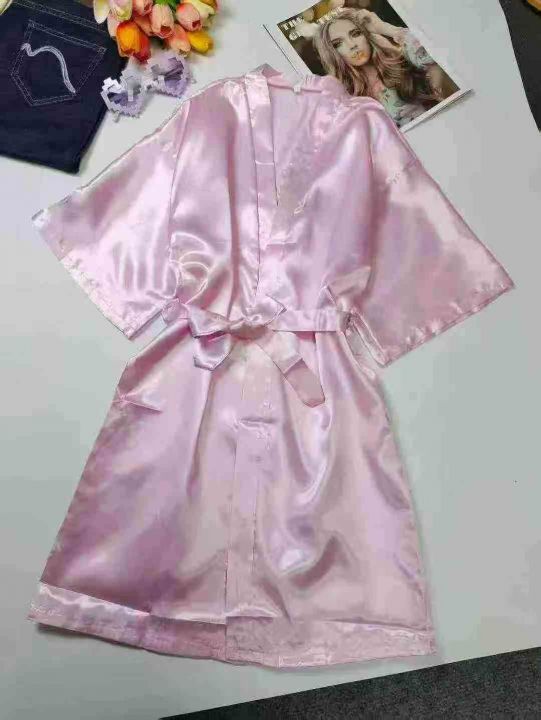 7600件烫金Birthday Squad男孩女孩粉色冰丝睡袍儿童睡衣生日小队派对袍 6一...