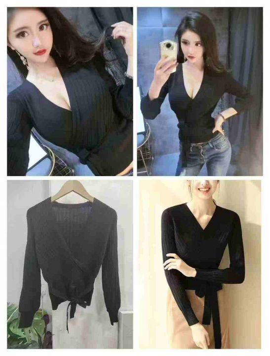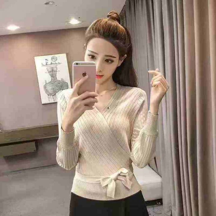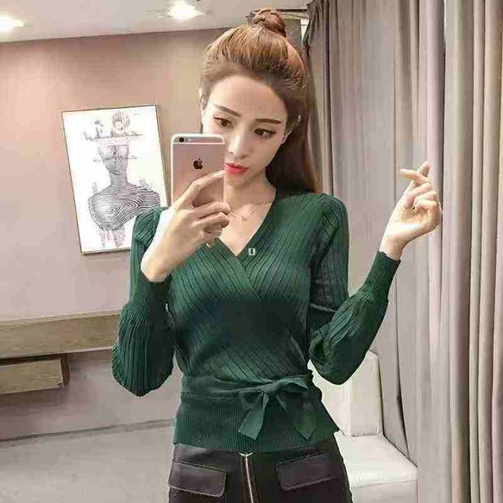 春秋新款修身收腰系带V领针织长袖衫,品质很好,大货...